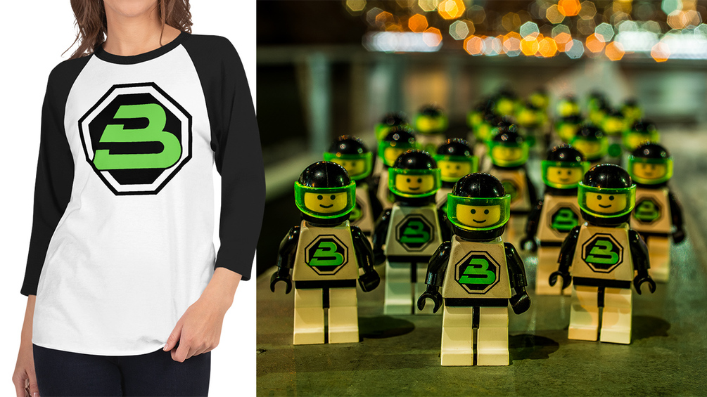 A throwback to the classic LEGO Space Blacktron II theme from the heyday of the early '90s. I've recreated the iconic green B logo in vector and have it available as a long-sleeve shirt to mimic the appearance of their minifigures.